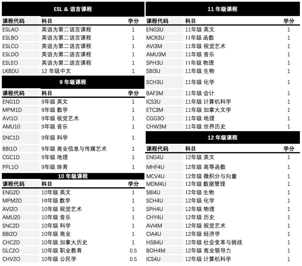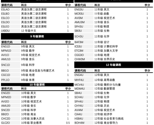 9-12年级OSSD课程